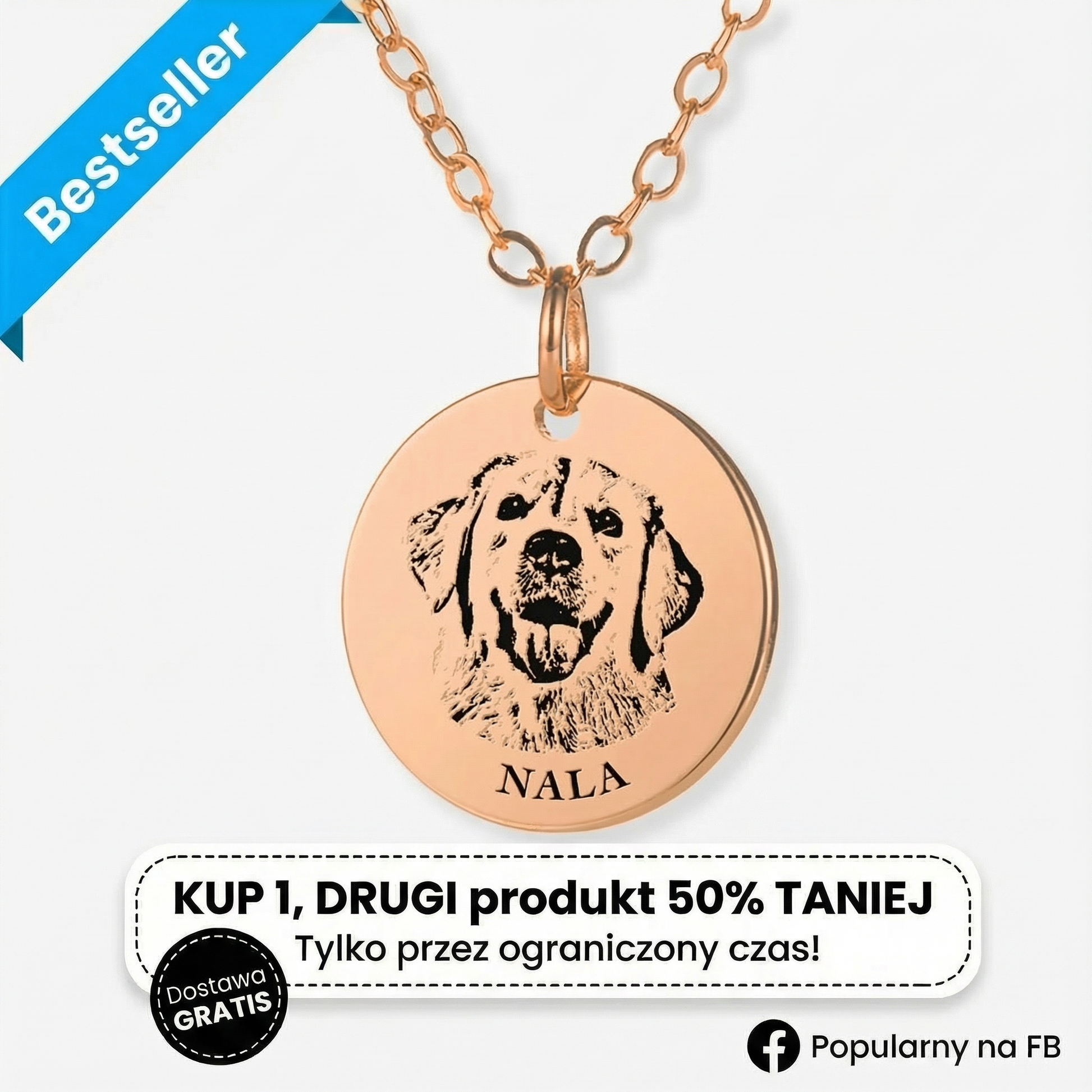 Znalazłam naszyjnik na TikToku i na początku byłam trochę sceptyczna, ale postanowiłam spróbować. Dotarł naprawdę szybko, znacznie szybciej, niż się spodziewałam! Grawer jest perfekcyjny, idealnie odwzorowuje mojego pieska, aż trudno uwierzyć.